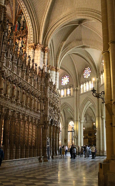 The wait to buy tickets was well worth it: it was a jewel of a cathedral. The Toledo cathedral is one of three 13th century "high"Gothic Cathedral in Spain (the other two are located in Burgos and Leon) and many consider it a jewel of this type of architecture. It took 250 years before completion and so, its interior is rich with several styles, masterpieces of Gothic, renaissance and Baroque periods.